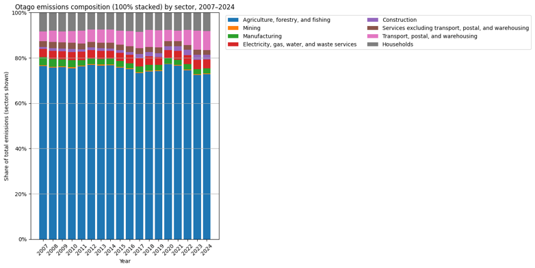 Otago’s emissions profile is unique and linked to the make-up of our local economy. The main greenhouse gas emissions sources in Otago are: