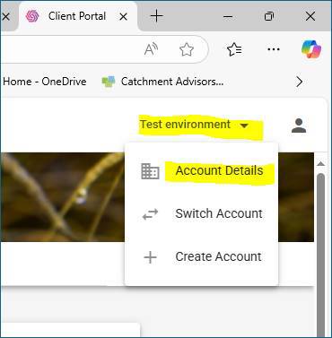 To invite additional persons to access the organisation’s account, go to your organisation’s account (in the image below, the name of the applicant is ‘Test environment’), on the top right corner of the screen: