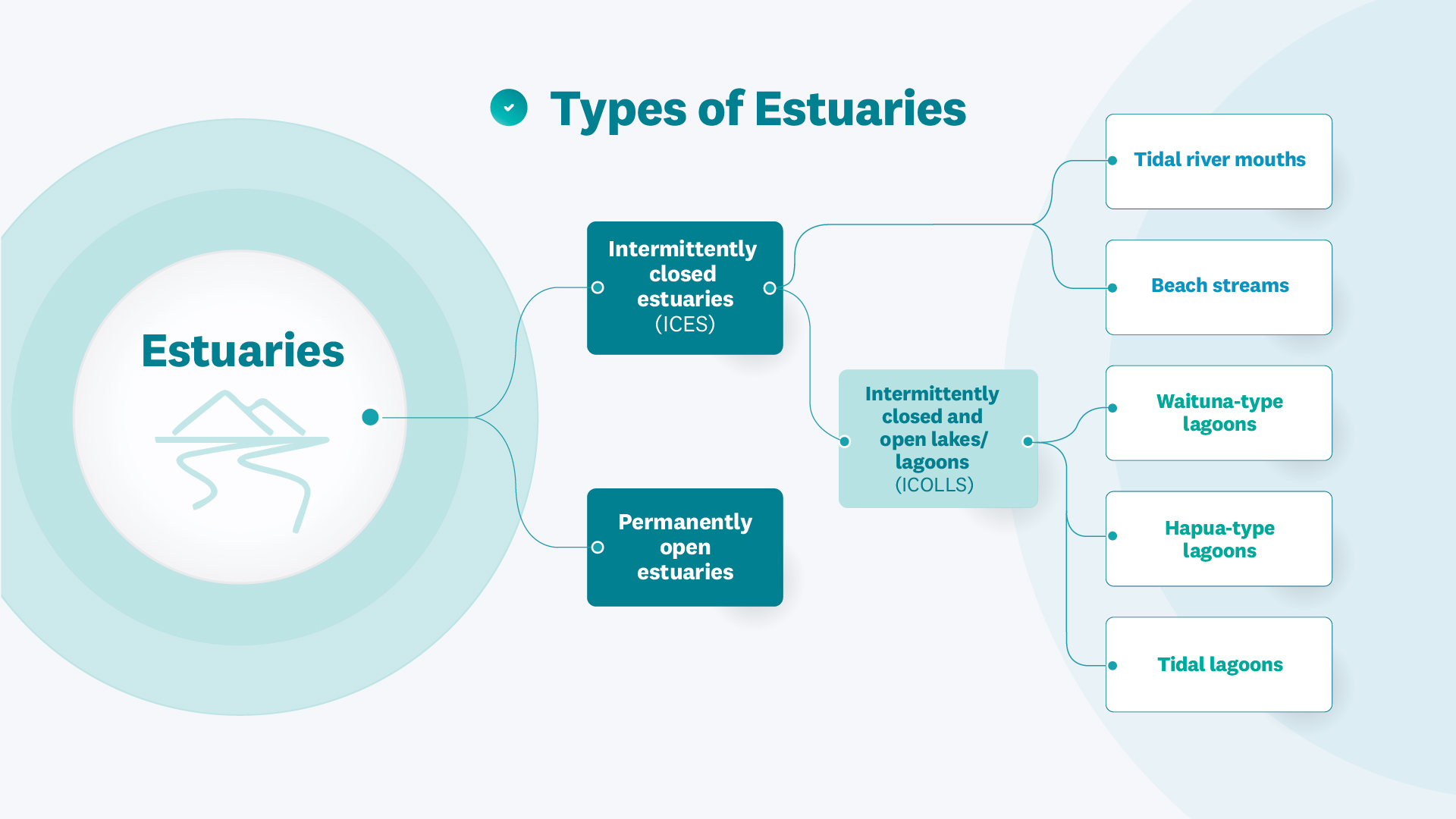 In some rivers, the water flow slows down or stops for periods of time (like during dry summers). But while the freshwater slow slows or stops, the ocean waters are still pushing sand and pebbles into the area. This can cause the mouth of the river to become blocked, closing the estuary. These types of estuaries are called intermittently closed estuaries (ICEs).