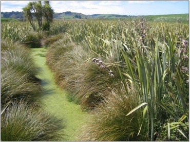 Description: Densely vegetated rectangular swamp dominated by flax and sedge, near to Lake Tuakitoto Wetlands. 1, 78