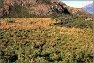 Description: Several peaty wetlands occurring in depressions among the basement bedrock. These wetlands occur in distinct steps with a significant stream linking two large wetland areas. Makarore/Makarora-Lake Hawea Road (SH6) transects the area occupied by the wetlands. 90