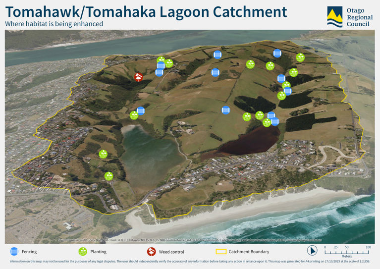 ORC, partners and key stakeholders worked collaboratively to finalise an Implementation Plan based on the Ecological Assessment. The vision is “a thriving Tomahawk Lagoon catchment, where water quality and biodiversity are enhanced through community action to contribute to a healthy ecosystem for all to enjoy”. Activities focus on reducing contaminants entering the lagoons. The main change between the draft and the final was removing the activity ‘Construct a wetland at the outlet of Lagoon Creek’ and redirecting $30,000 of funding to ‘fencing and planting’.