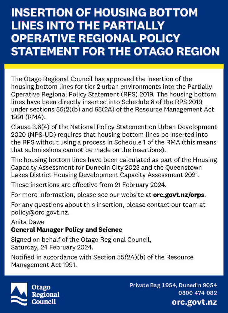 For any questions about this insertion, please contact our team at policy@orc.govt.nz