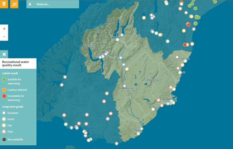 “Every summer ORC’s monitoring team collect weekly samples to test bacteria levels and check for toxic algae at popular swimming spots in rivers and lakes across Otago.”