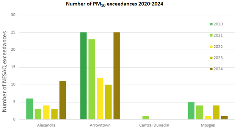 The Otago Regional Council recorded 28 breaches of national air quality standards this winter; 11 more than in 2023*.