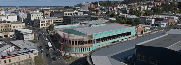 Cr Robertson says there has been “positive progress” made by Port Otago and the construction team involved in recent months, and in keeping the construction programme moving forward, as the exterior’s sweeping façade connecting MacLaggan Street to Broadway takes shape.