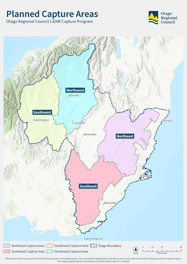 Otago and parts of Fiordland are the only regions in the country without full LiDAR coverage.