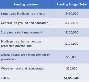 Under the different categories that can include on-ground works, biodiversity enhancement, water quality improvement, pest animal or weed control, native planting and revegetation, education, or administrative support, she says.
