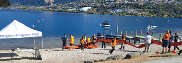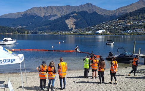 The exercise, on 26 February, was led by the Otago Regional Council’s Pollution Response team, in collaboration with staff from the Queenstown Lakes District Council and its Harbourmaster team - responding together to the simulated real-life emergency scenario.