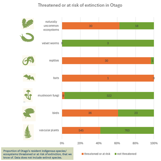 These figures relate to resident indigenous species in Otago and do not include species that are already extinct.